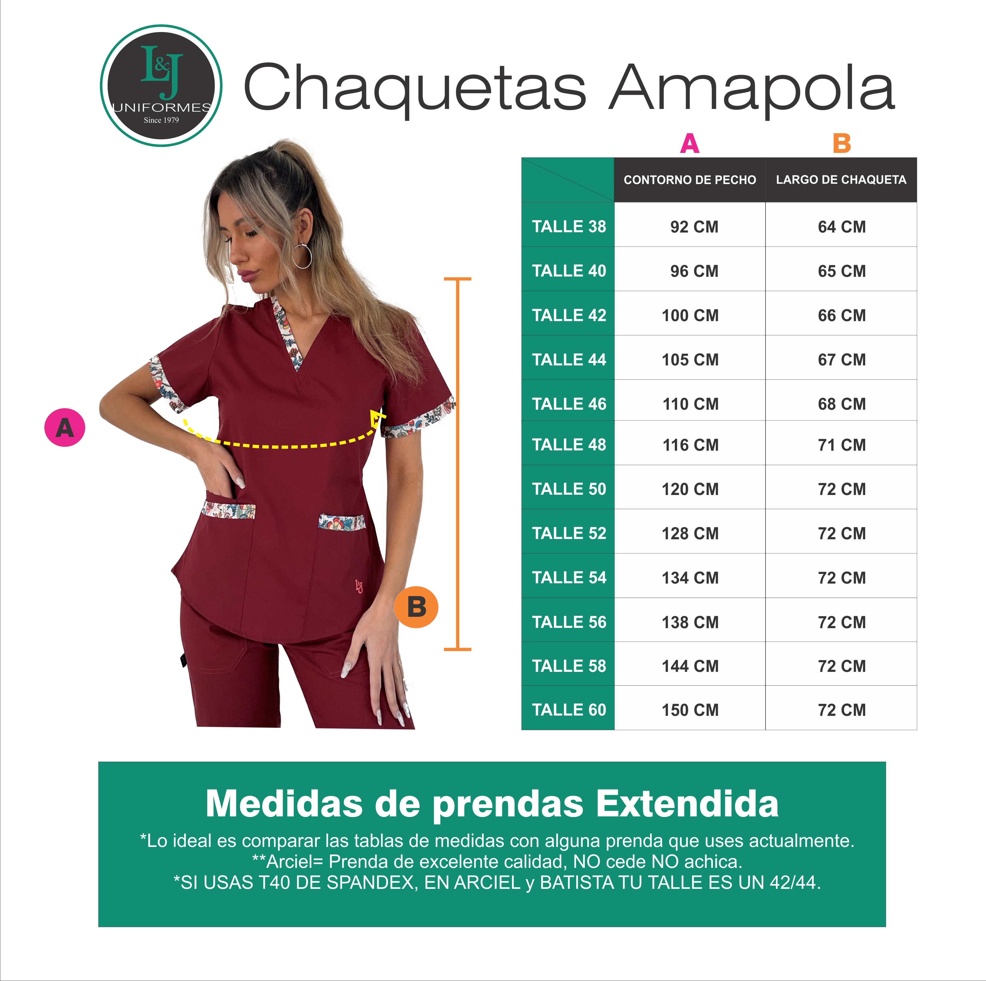 Chaqueta Amapola: Escote en V con vivos y detalles estampados (o lisos según combinación) de excelente calidad. Incluye mangas cortas y tirita de ajuste en la cintura trasera para definir la silueta.