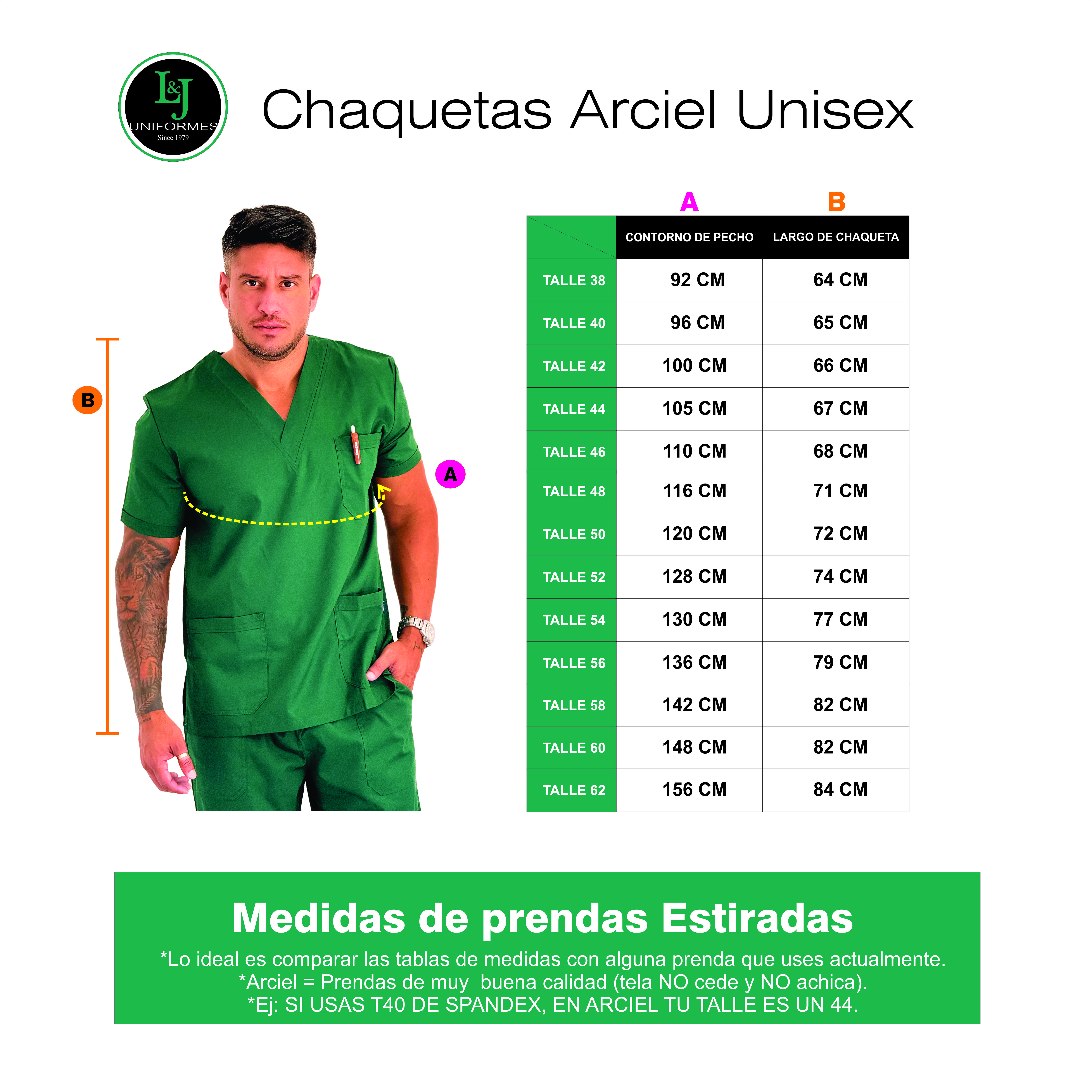 Margen de comodidad: Sugerimos agregar 5 cm extras a tu contorno de Busto/Tórax/Cadera sobre la medida de la tabla para asegurar comodidad total en el día laboral.