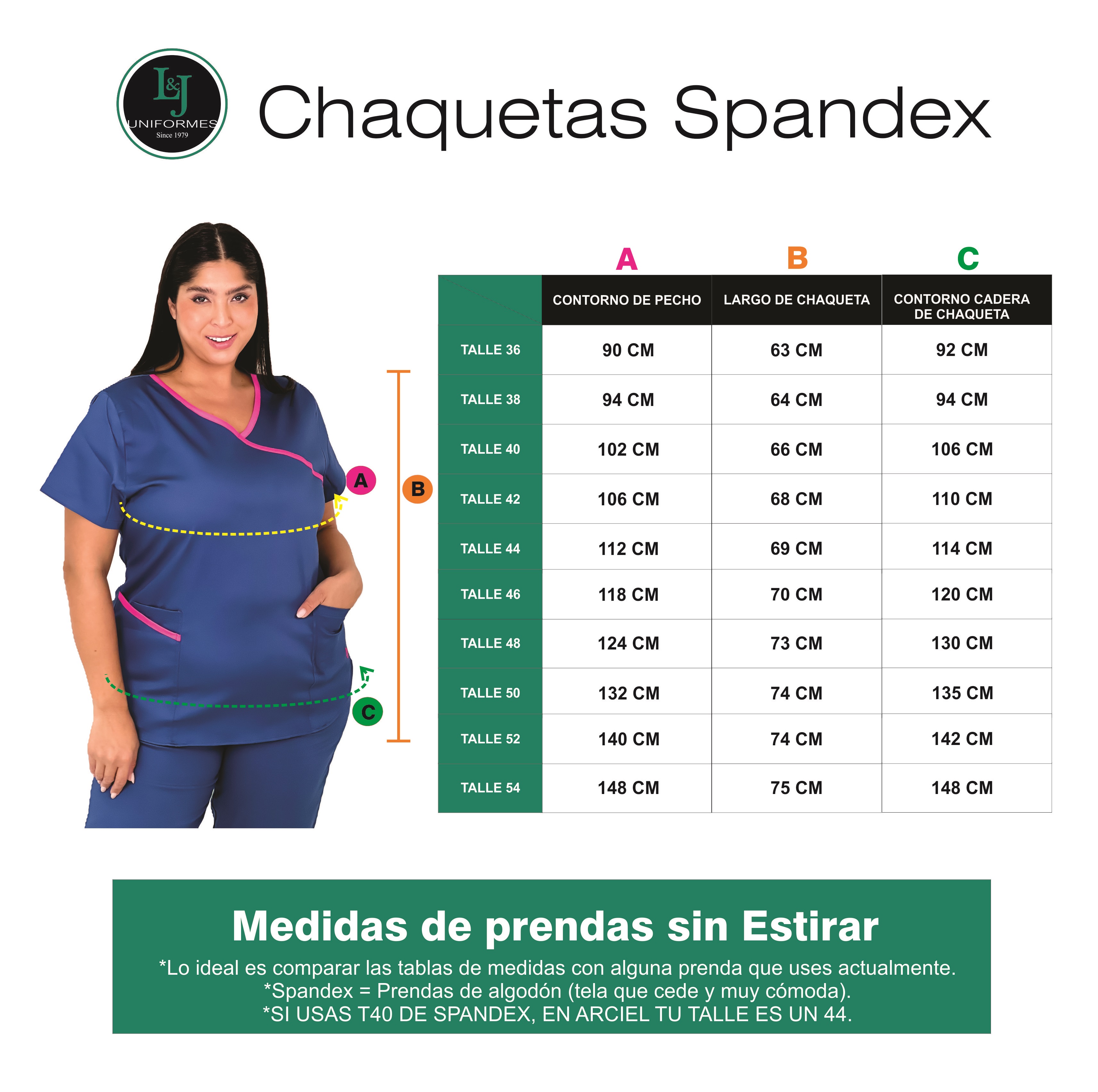 Nota: Las medidas de la tabla corresponden a la prenda extendida sobre una superficie plana, sin estirar.